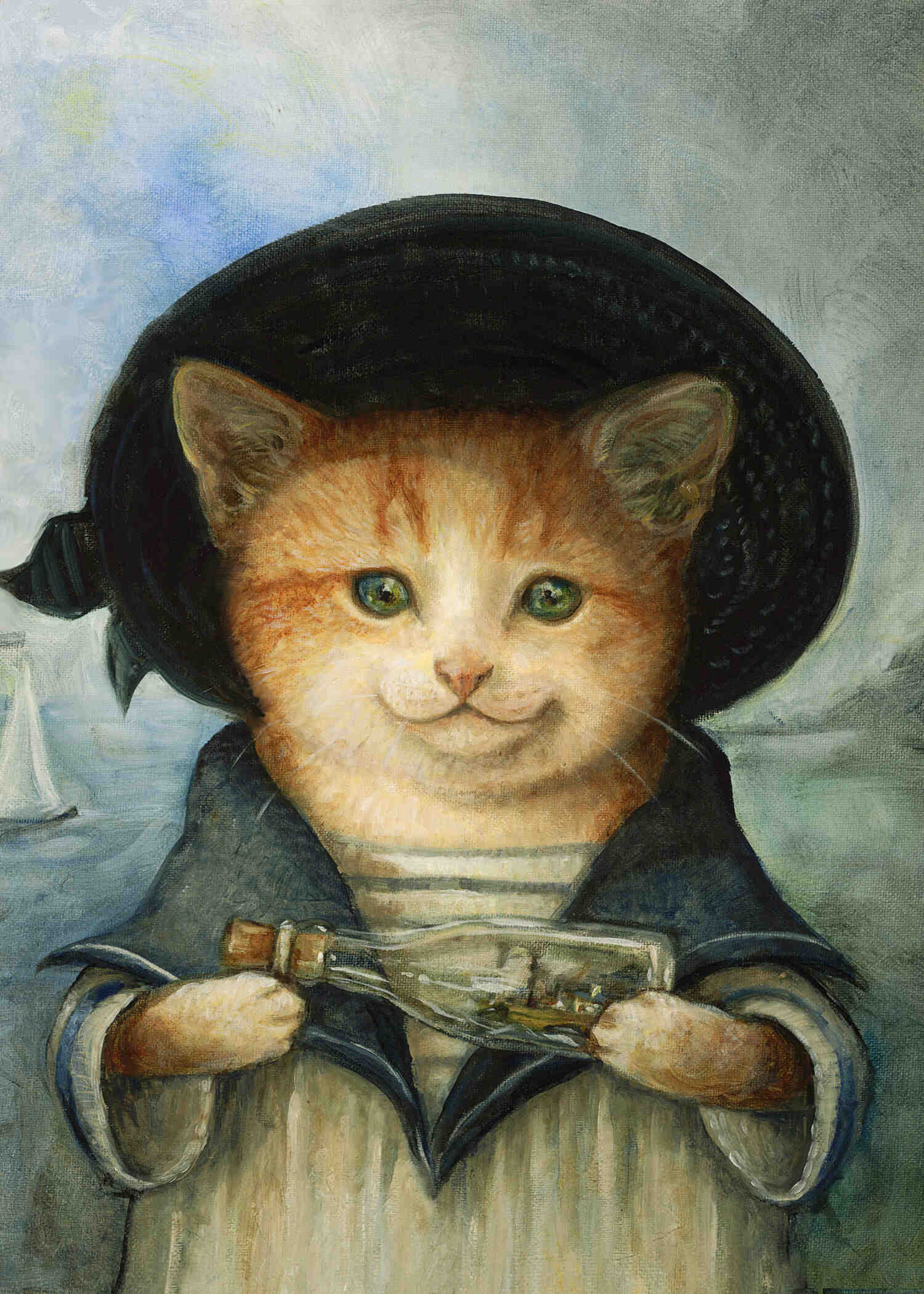 Little Henry dreams of adventure on the wild green sea. His favorite treasure is a tiny model of his father Whittington’s fishing boat, cresting a wave of swirling blue clay inside an old glass bottle.