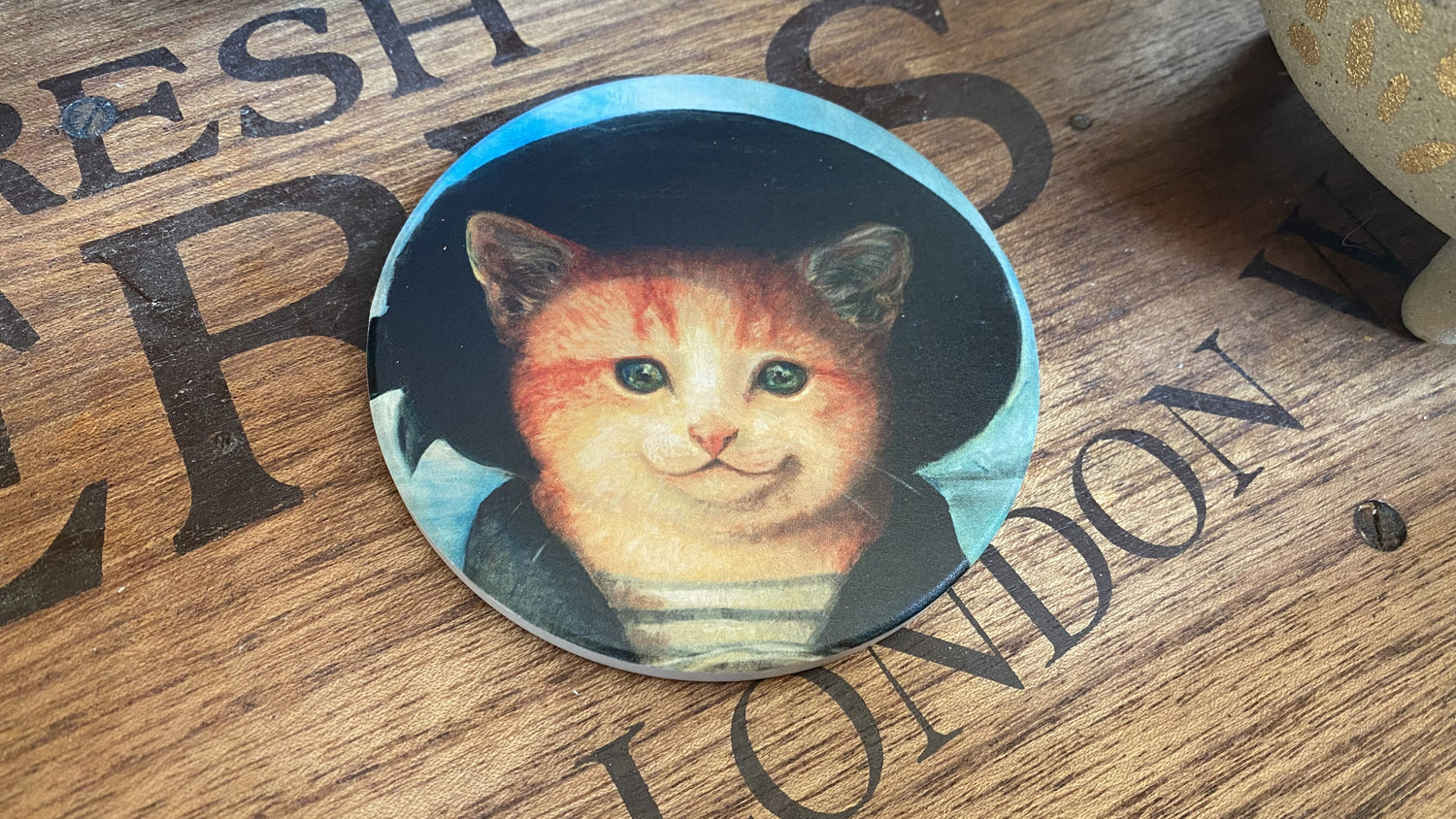 This coaster is made of solid ceramic with a cork backing, very durable and made to last. A perfect companion for your favorite drink!