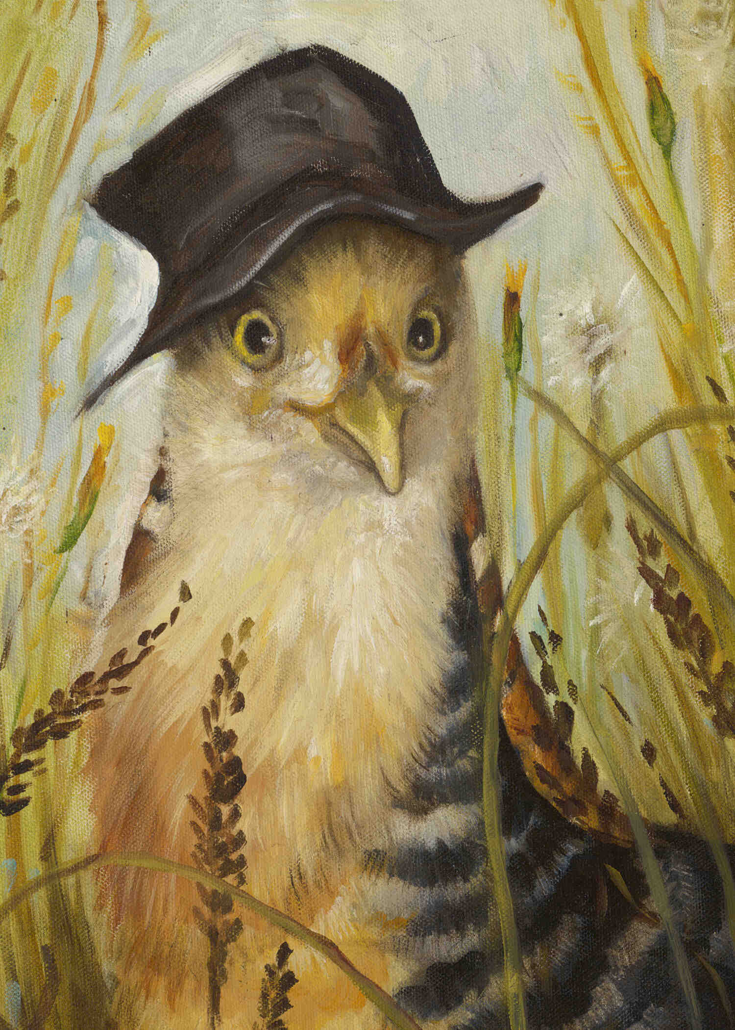 Meet Quentin, a fine and feathered dandy, here captured in his shabby hat. A lovely fellow, onlookers swoon at his dreamy stare, such a hopeless case! He spends his days writing poetry and languishing in the rose bed, and his nights wandering the moors.