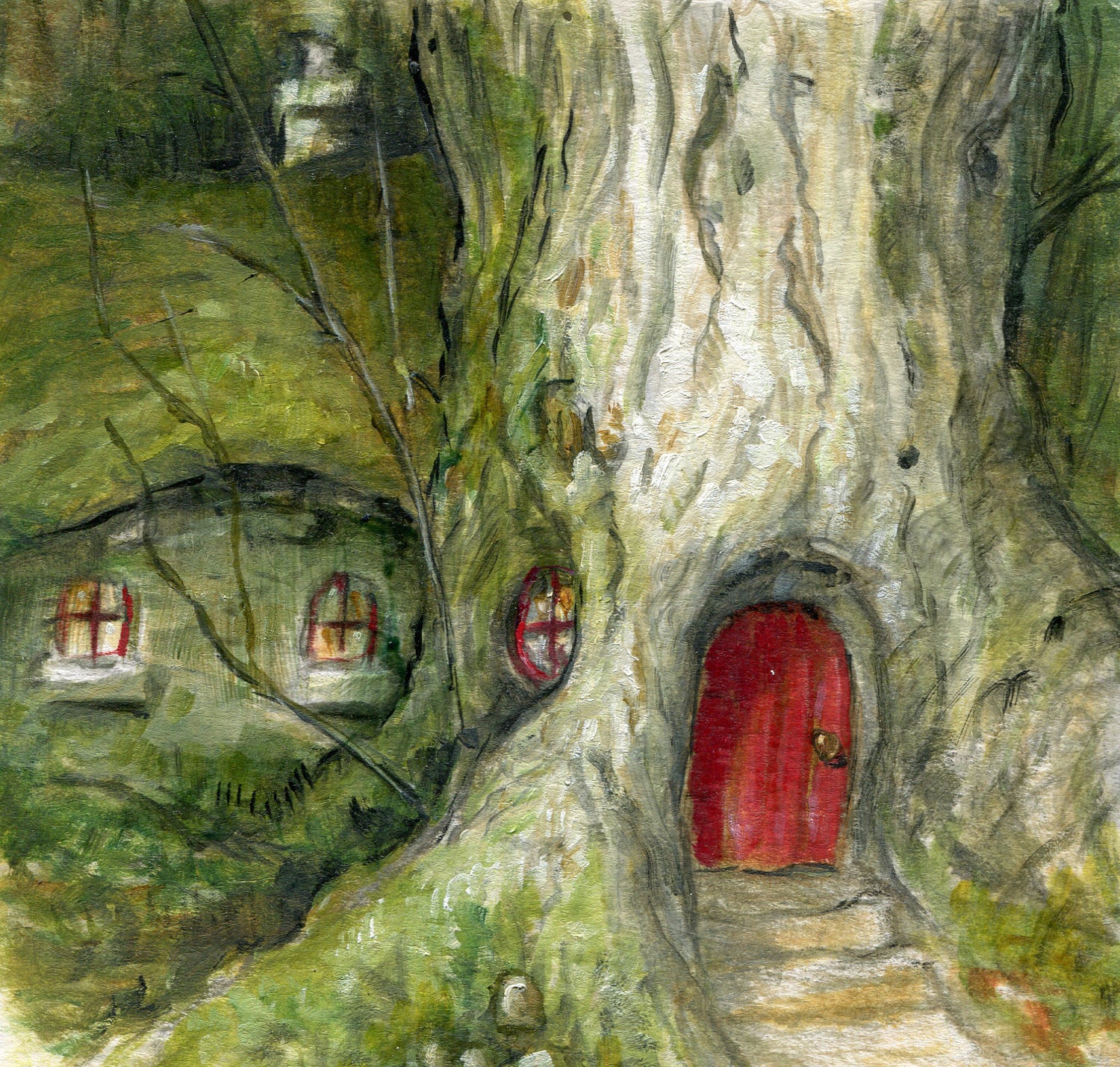 Further up the winding path, watch for a deer trail to the right. If you’re lucky, you’ll spot Harold’s house, its green front door nestled among the trees.